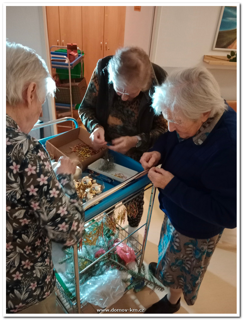 U nás v Domově jsme si nazdobily stromečky, jejichž součástí jsou vyrobené ozdoby klientů, nechyběla vánoční atmosféra se zpěvem koled.